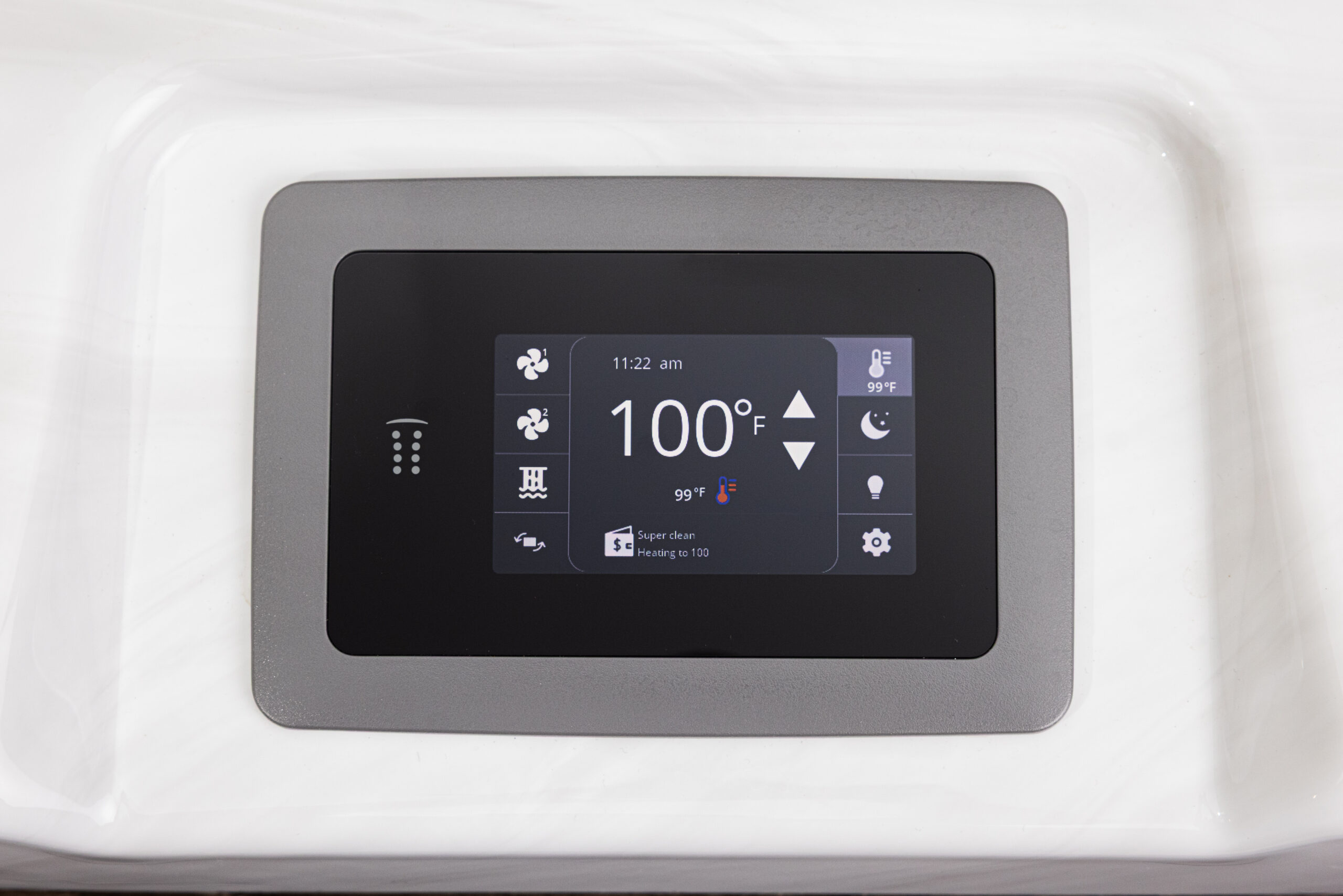 EOS O3 is a premium oxidation system that cleans and clarifies using the powerful oxidation properties of O3 gas. This three-part system works by generating an ample volume of O3 gas, combining it with spa water in a high-contact mixing chamber, and then filtering out over 99% of excess ozone to prevent any negative effects.