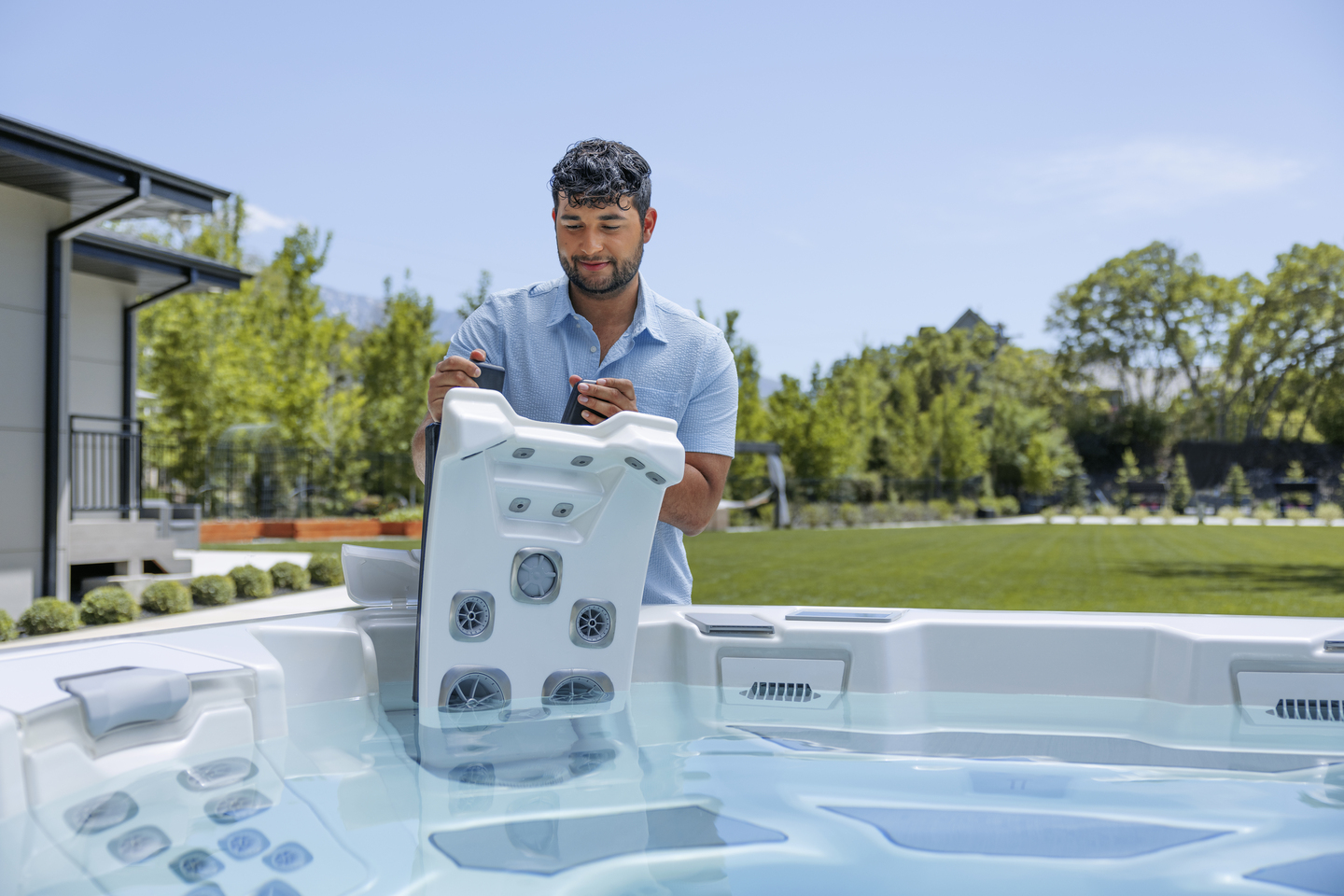 - As much as possible, avoid entering your spa with sunscreen, lotions, deodorants, shampoos, or similar substances on your body, or detergents on your clothes.